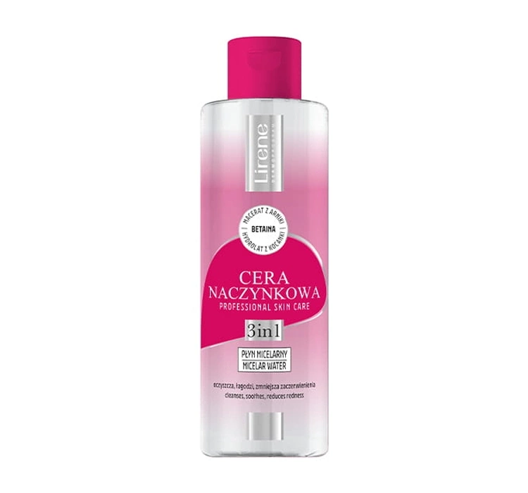 Мицеллярное средство для сосудистой кожи Lirene сочетает в себе несколько свойств: очищает, тонизирует и эффективно снимает макияж. Деликатная формула обеспечит комплексный уход. Мицеллярная вода Lirene 3в1 – идеальное решение для людей с чувствительной кожей, склонной к покраснению и лопанием капилляров.