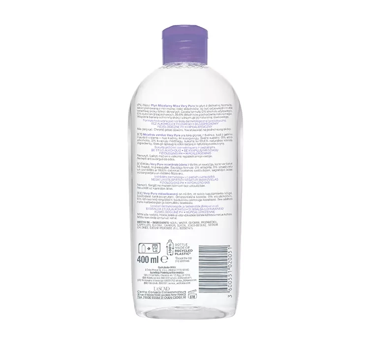 MIXA VERY PURE МИЦЕЛЛЯРНАЯ ЖИДКОСТЬ ДЛЯ ЛИЦА И ГЛАЗ ДЛЯ ВЗРОСЛЫХ И ДЕТЕЙ 400МЛ