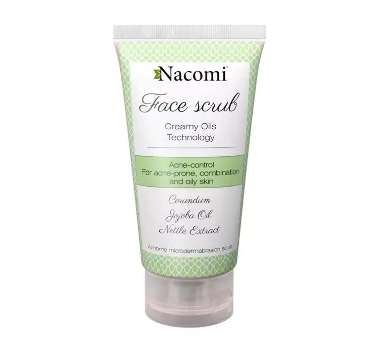 Натуральный скраб для лица от прыщей интенсивно очищает поры и помогает избавиться от омертвевшей кожи. Применение скраба с использованием косметики Nacomi активизирует кожу для регенерации; очищенная кожа лучше насыщается кислородом и снабжается кровью. Скраб рекомендуется особенно людям, имеющим проблемы с жирной и смешанной кожей, а также тем, чья кожа склонна к появлению прыщей и комедонов. Экстракт крапивы и хвоща нормализует секрецию кожного сала и тонизирует кожу. Масло сладкого миндаля разглаживает кожу и унифицирует цвет, поэтому при длительном использовании шрамы и дефекты становятся менее заметными.