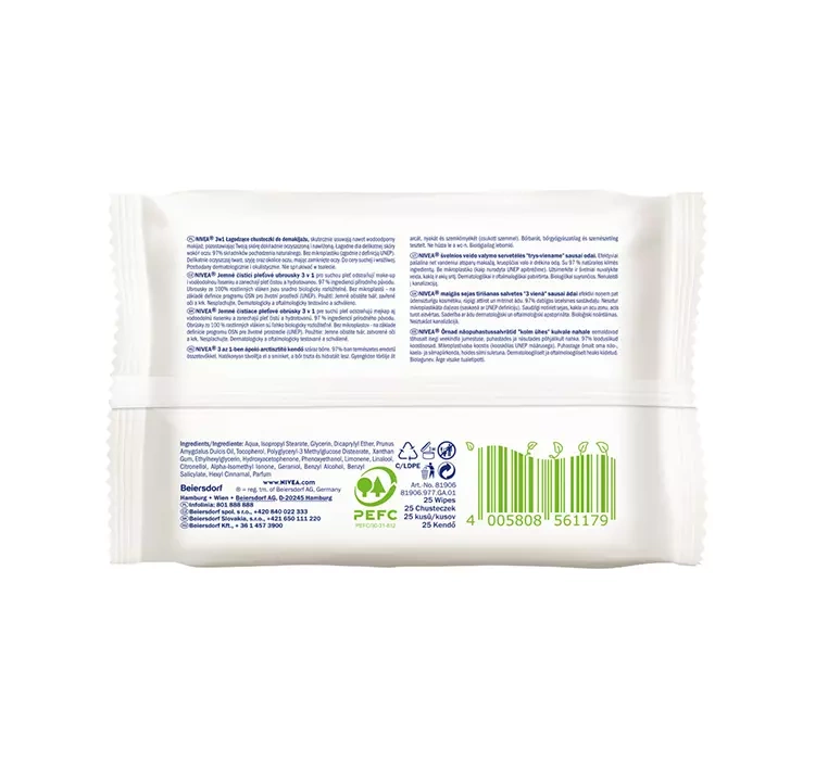 NIVEA БИОРАЗЛАГАЕМЫЕ САЛФЕТКИ ДЛЯ ДЕМАКИЯЖА СУХАЯ КОЖА 25 ШТ