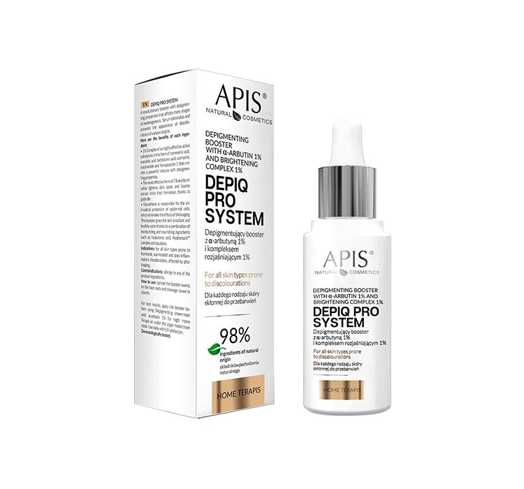 Apis Professional Depiq Pro System – это уникальная серия косметики, специально разработанная для кожи, страдающей от неприятного изменения цвета – пигментации. Рецептуры основаны на идеальном сочетании активных ингредиентов, обладающих сильным осветляющим эффектом. Предложение включает в себя широкий выбор продуктов, таких как ампулы, пилинги, бустеры и крем-маски для лица, благодаря которым Вы можете обеспечить своей коже многомерный уход. Ознакомьтесь с фантастической линией Apis Depiq Pro System и наслаждайтесь красивой здоровой кожей каждый день!