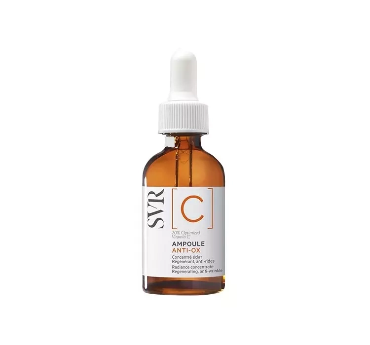 Ampoule Anti-Ox марки SVR Laboratoire - это антивозрастная концентрированная сыворотка в ампуле, которая осветляет кожу, придавая ей блеск, и защищает от окислительного стресса, вызванного курением, стрессом, загрязнением и ультрафиолетовым излучением. Благодаря высокой концентрации витамина С продукт идеально подходит для тусклой, неровной кожи с признаками старения.