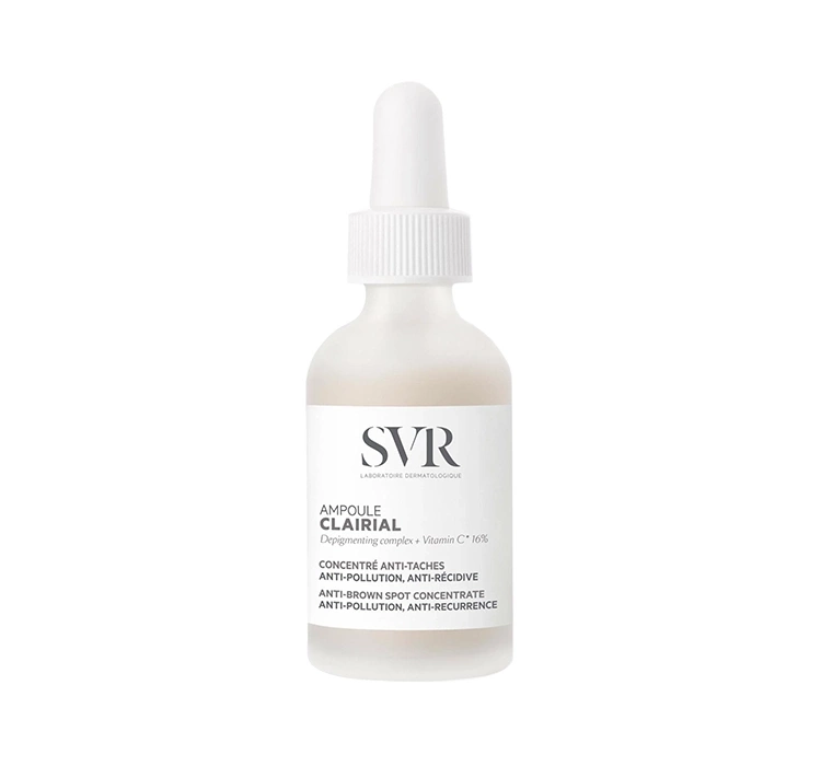 Сыворотка Clairial SVR в ампуле эффективно борется с изменением цвета кожи. Подходит для всех типов кожи. Для всех типов темных пятен, связанных с нахождением на солнце, старением кожи, беременностью, недостатками или неровным цветом лица. Можно использовать продукт для лица, декольте и рук. Везде, где Вы боретесь с неровным тоном кожи.