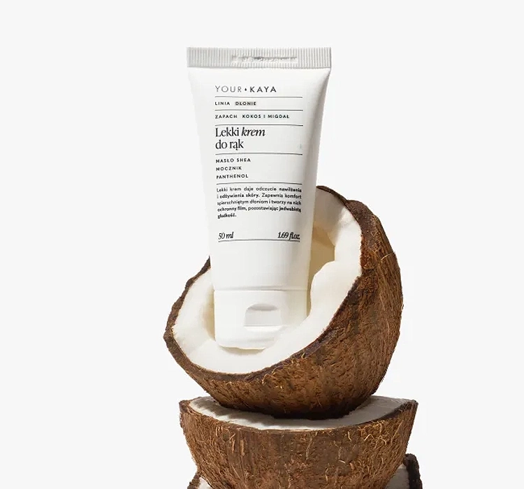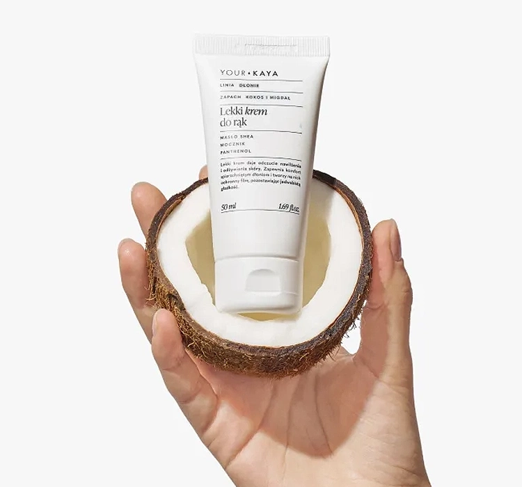 Легкий крем для рук с ароматом кокоса и миндаля Your Kaya – это деликатный уход, который питает и защищает кожу рук ежедневно. Его легкая, быстро впитывающаяся формула окутывает руки шелковистым слоем, оставляя ощущение гладкости и мягкости уже после первого применения. Бархатная текстура и нежный натуральный аромат кокоса и миндаля делают ежедневный уход настоящим удовольствием. Идеальный выбор для тех, кто хочет сохранить здоровый вид рук даже при частом контакте с водой, моющими средствами или переменчивой погодой.