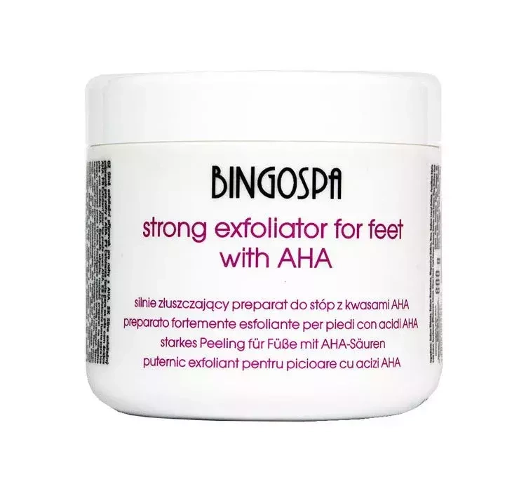 Препарат BingoSpa служит для отслаивания ороговевшего слоя кожи стоп благодаря действию фруктовых кислот AHA (альфа-гидрокислоты), экстрактов и растительных масел с отслаивающими и увлажняющими свойствами.
