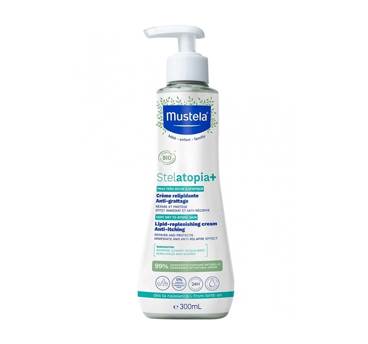 Mustela Stelatopia+ крем для восстановления липидов против зуда — это специальная формула, разработанная для очень сухой, чувствительной и атопической кожи новорожденных, детей и взрослых. Можно применять уже с 1-го дня жизни, также на лицо и тело. Продукт содержит тщательно подобранные активные компоненты, которые возвращают коже комфорт, уменьшают ощущение зуда и существенно снижают покраснение и чувство стянутости.