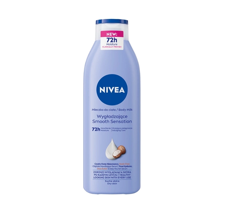 NIVEA Разглаживающий лосьон для тела с глубоко увлажняющей сывороткой и драгоценным маслом ши. Мягко обволакивает вашу кожу, делая ее шелковистой и мягкой на ощупь и интенсивно увлажняемой в течение 48 часов - всего за одно нанесение!