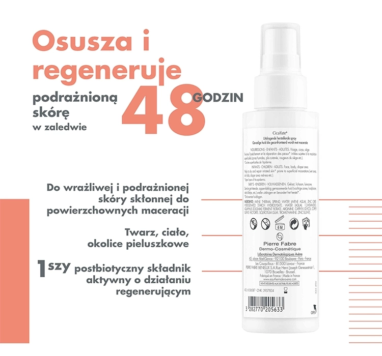 Спрей Cicalfate + Avene является эффективным решением для локальной регенерации эпидермиса, который раздражен, подвергается воздействию влаги или труднодоступный. Это касается как взрослых, так и детей. Спрей подсушивает и обеспечивает кожу всеми необходимыми питательными веществами для максимально быстрого восстановления. Кроме того, он оказывает успокаивающее действие на все экссудативные высыпания на коже, например, ветряную оспу.