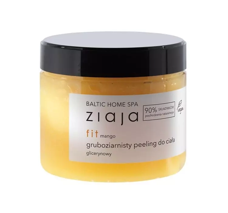 Крупнозернистый пилинг для тела из серии Baltic Home Spa Fit от Ziaja разглаживает, смягчает и тонизирует кожу, а также обеспечивает аромат сочного манго.