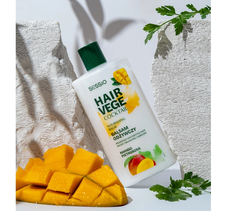 Легкий питательный бальзам Sessio для ломких и ослабленных волос с характерными нотами аромата – манго и петрушки. Кондиционер предназначен для всех типов волос, особенно для ломких и ослабленных. Богатый состав питательного бальзама Mango Partruszka Sessio Hair Vege Coctail делает его идеальным выбором для тех, кто хочет бережно, но эффективно ухаживать за своими волосами. Питательный бальзам для волос Hair Vege Coctail содержит экстракт манго и петрушки, которые вместе создают идеальную комбинацию для здоровья волос.
