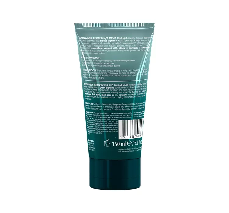 Осторожно вотрите маску во влажные, осушенные волосы, избегая корней. Оставьте на 15 минут или больше для более интенсивной регенерации. Затем тщательно промойте волосы прохладной водой. Процедуру следует повторять каждые 3-5 дней.