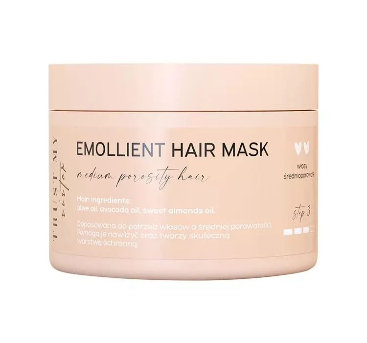Смягчающее маска Trust My Sister для волос со средней пористостью в своей формуле содержит специально подобранные активные ингредиенты, такие как оливковое масло и масло макадамии, авокадо и сладкого миндаля. Косметическое средство предотвращает пушистость и жирность волос, а также улучшает их эластичность.