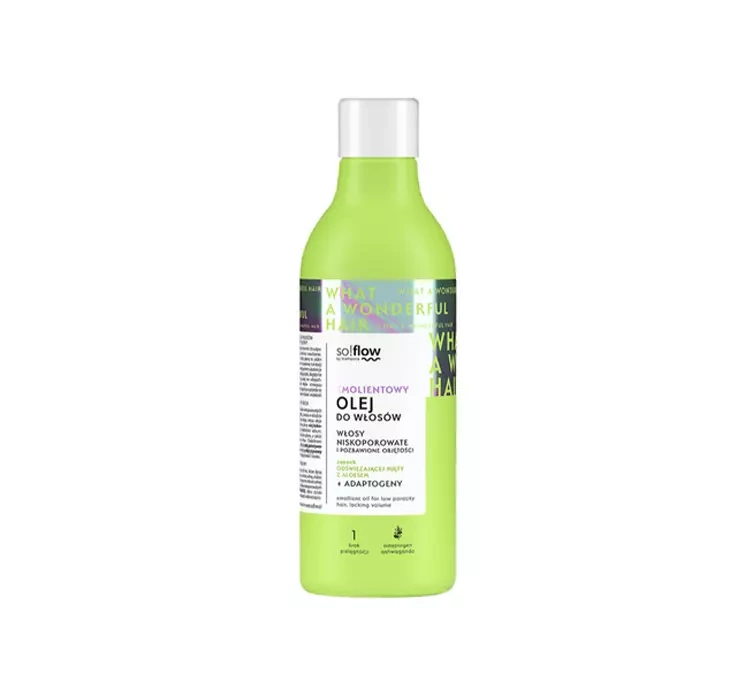 В формуле масла So!flow для волос с низкой пористостью Вы найдете полезные активные ингредиенты, интенсивно питающие пряди. Формула включает масла: кокосовое, крапивное, касторовое и сквалан, а также адаптоген в виде ашваганды, обладающей антиоксидантными, увлажняющими и освежающими свойствами.