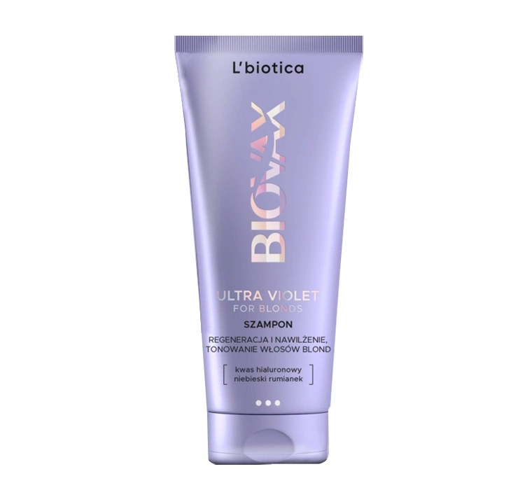 Шампунь для волос Biovax Ultra Violet For Blonds содержит фиолетовые пигменты, которые нейтрализуют нежелательные желтые и медные блики. Они также придают светлым волосам красивый холодный оттенок, а седине – перламутровый цвет. После использования косметического средства кожа головы идеально очищается, а волосы приобретают хороший блеск и эластичность. Волокна волосы разглаживаются от корней до кончиков.