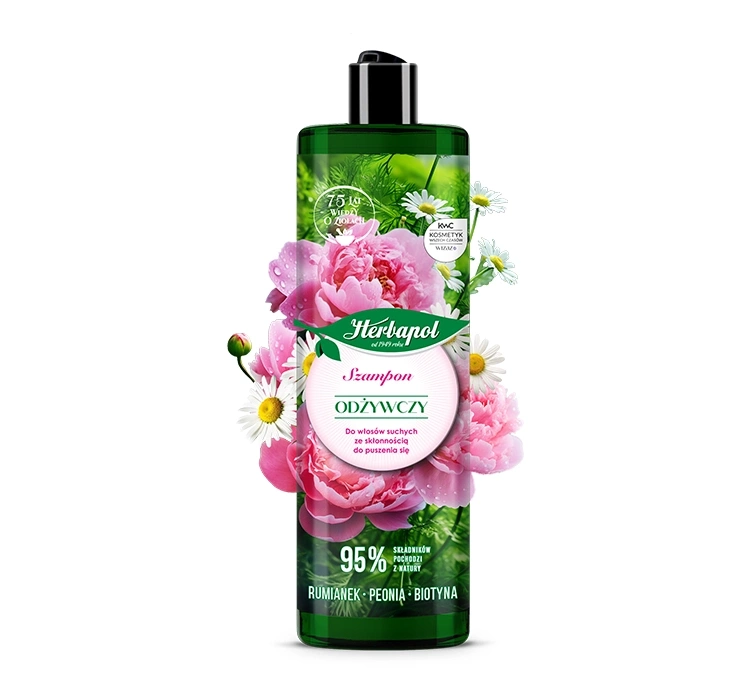 Шампунь Ромашка & Пион & Биотин Herbapol восстанавливает волосы от корней, делая их шелковисто-мягкими, гладкими и заметно более здоровыми. Он веганский и содержит до 95% ингредиентов природного происхождения. Дополнительным преимуществом является приятный аромат свежесрезанного пиона. Это отличный выбор для тех, кто ценит не только эффективность и натуральность, но и хочет наслаждаться приятными ощущениями при ежедневном уходе за волосами.