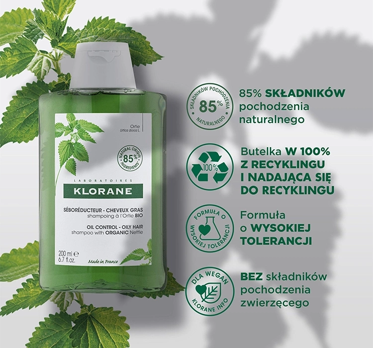 KLORANE СЕБОРЕГУЛИРУЮЩИЙ ШАМПУНЬ ДЛЯ ЖИРНЫХ ВОЛОС С ОРГАНИЧЕСКОЙ КРАПИВОЙ 200МЛ