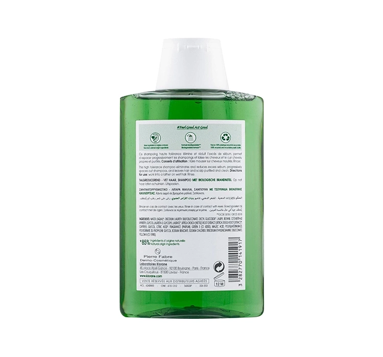 Регулярно пользуясь шампунем от Klorane с органическим экстрактом крапивы, Вы можете уменьшить частоту мытья волос. Косметика не содержит ингредиентов животного происхождения, что является следующим большим преимуществом. Более того, упаковка биологически разлагается, что делает шампуни Klorane отличным выбором для людей, заботящихся о природе.