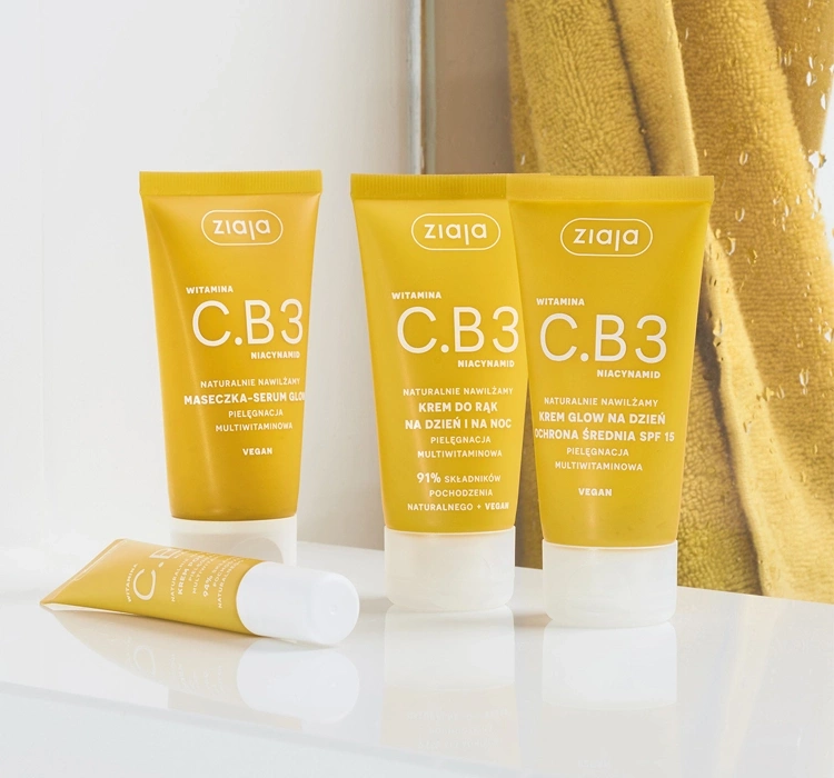 Формула крема Ziaja Витамин C.B3 содержит эссенцию витаминов C и B3 (ниацинамид), которые поддерживают естественную защиту кожи и улучшают её тон. Кроме того, обогащена витаминами B5, B6 и E и комплексом пептидов природного происхождения, которые увлажняют, разглаживают и придают энергию коже, способствуя заметному улучшению её состояния. Защитный крем Ziaja не забивает поры и обеспечивает комфортное состояние кожи в течение всего дня.