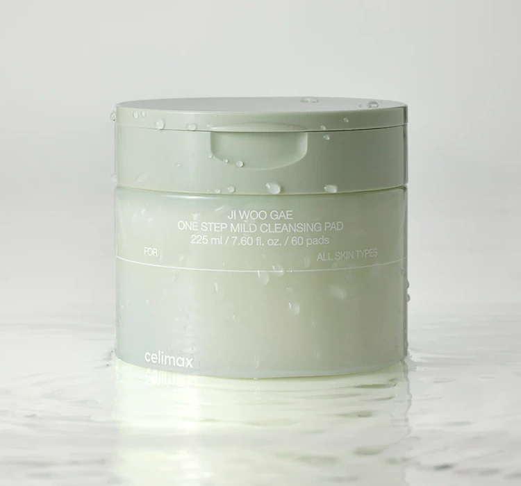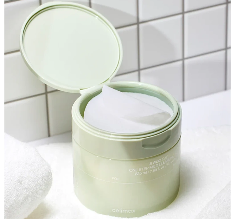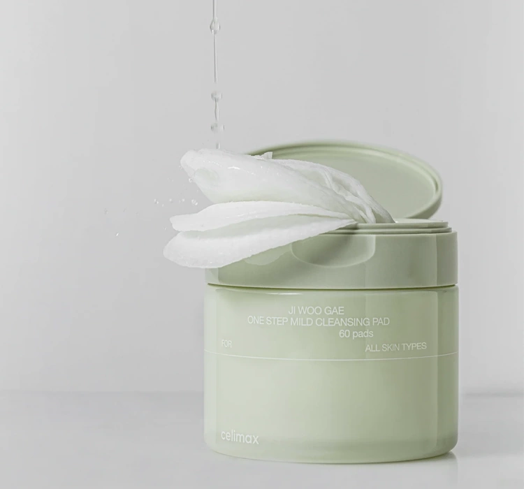 Celimax Ji Woo Gae One Step Mild Cleansing Pad — ніжні очищувальні диски для обличчя, які поєднують ефективне видалення макіяжу з делікатним доглядом за шкірою. Насичені багатою есенцією, вони ретельно очищують шкіру від макіяжу, себуму та забруднень, залишаючи її свіжою та м’якою, а також дарують відчуття комфорту. Легка кисла формула підтримує природний pH шкіри та зміцнює її захисний бар’єр.