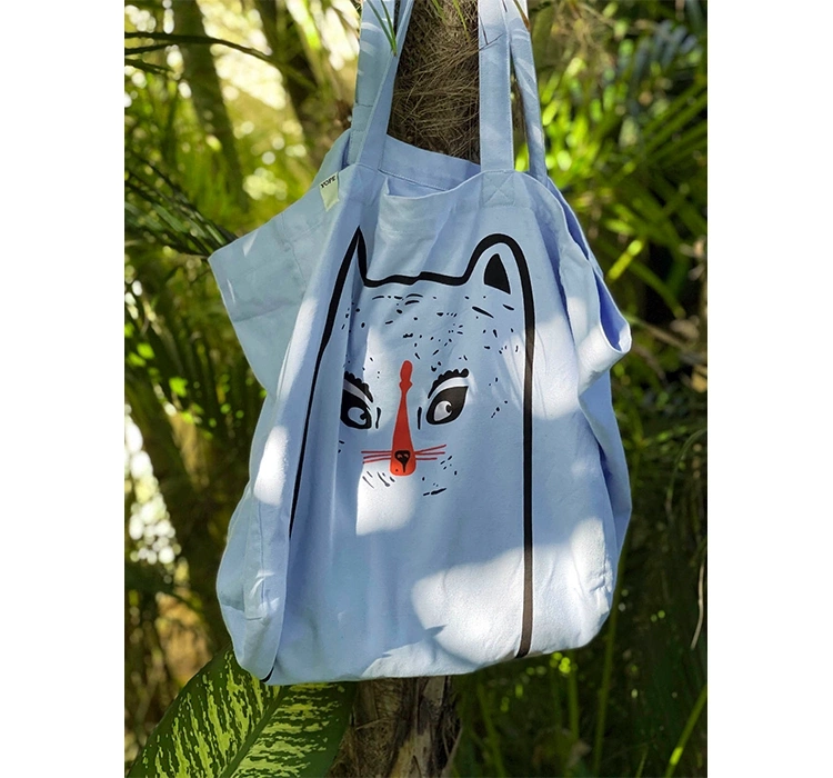 YOPE ВЕЛИКА СИНЯ ТКАНИННА СУМКА З КОТОМ