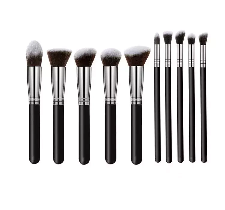 Набір з 10 пензлів для макіяжу із синтетичною щетиною дозволяє легко створювати ідеальний макіяж щодня. Щетина є делікатною і м’якою, але витривалою.