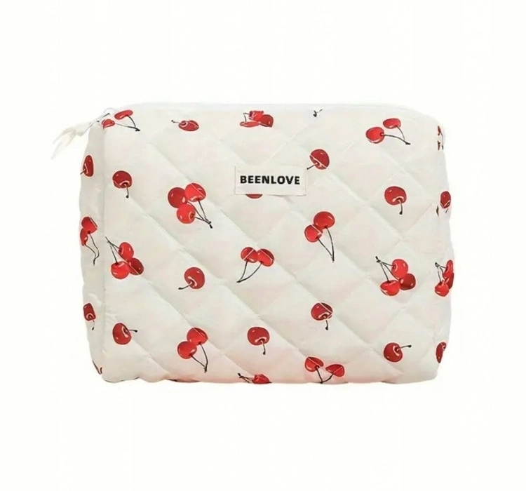 Вишуканий вишневий візерунок надає косметичці особливого шарму, підкреслюючи індивідуальний стиль власниці. Виготовлена з високоякісних матеріалів, вона має стьобану поверхню, що додає їй елегантності, а міцна блискавка гарантує надійне зберігання речей.