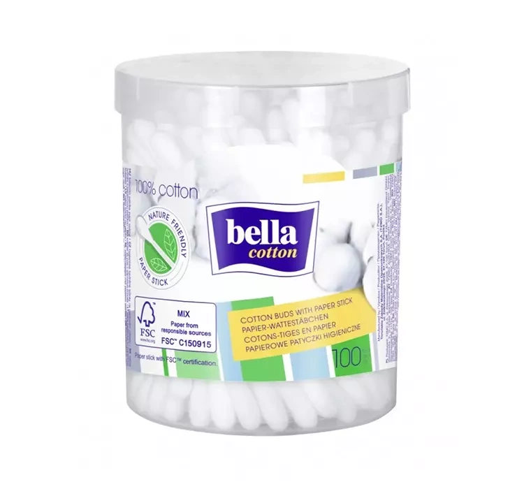 BELLA COTTON ПАПЕРОВІ ГІГІЄНІЧНІ ПАЛИЧКИ КРУГЛА УПАКОВКА 100 ШТУК