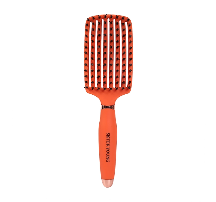 Щітка Sister Young OVIA BV для розчісування, укладання та моделювання волосся оснащена нейлоновою щетиною, змішаною зі щетиною кабана. Таке поєднання надає пасмам блиск і об'єм. Крім того, щітка для волосся має антистатичні властивості, завдяки яким пасма не пушаться і не електризуються, а закруглені кінчики нейлонової щетини запобігають подразненню шкіри голови і пошкодженню структури волосся.