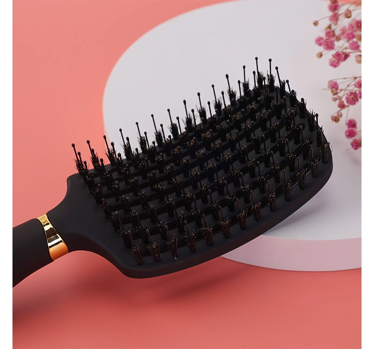 Щітка Sister Young OVIA BV для розчісування, укладання та моделювання волосся оснащена нейлоновою щетиною, змішаною зі щетиною кабана. Таке поєднання надає пасмам блиск і об'єм. Крім того, щітка для волосся має антистатичні властивості, завдяки яким пасма не пушаться і не електризуються, а закруглені кінчики нейлонової щетини запобігають подразненню шкіри голови і пошкодженню структури волосся.