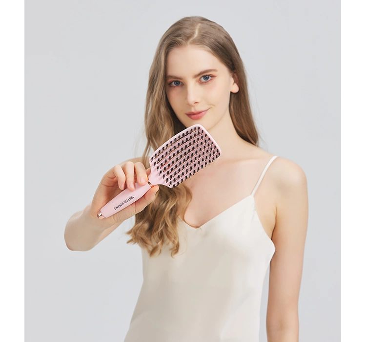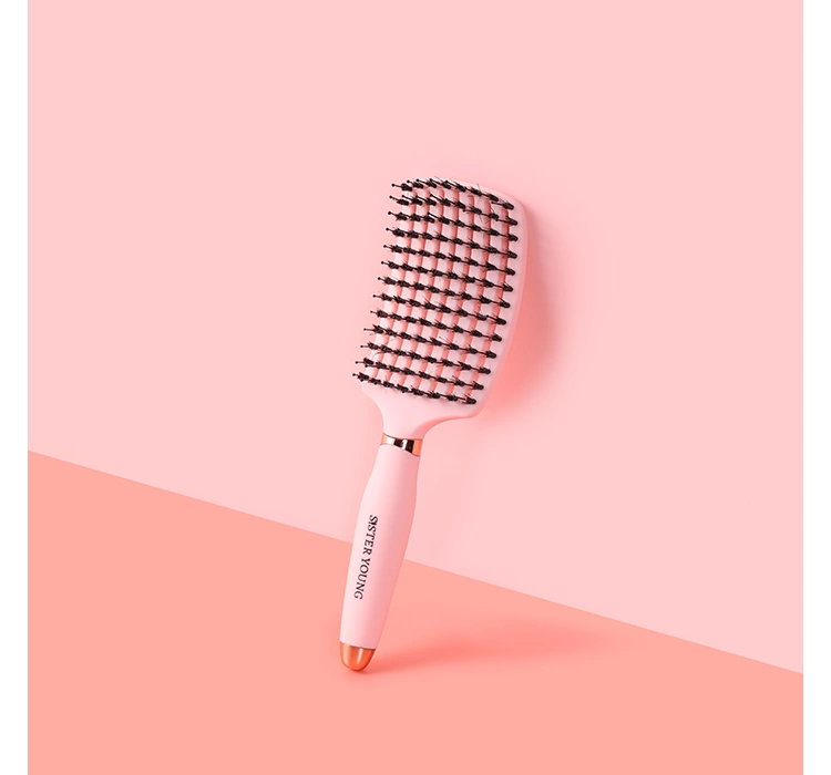 Щітка Sister Young OVIA BV для розчісування, укладання та моделювання волосся оснащена нейлоновою щетиною, змішаною зі щетиною кабана. Таке поєднання надає пасмам блиск і об'єм. Крім того, щітка для волосся має антистатичні властивості, завдяки яким пасма не пушаться і не електризуються, а закруглені кінчики нейлонової щетини запобігають подразненню шкіри голови і пошкодженню структури волосся.