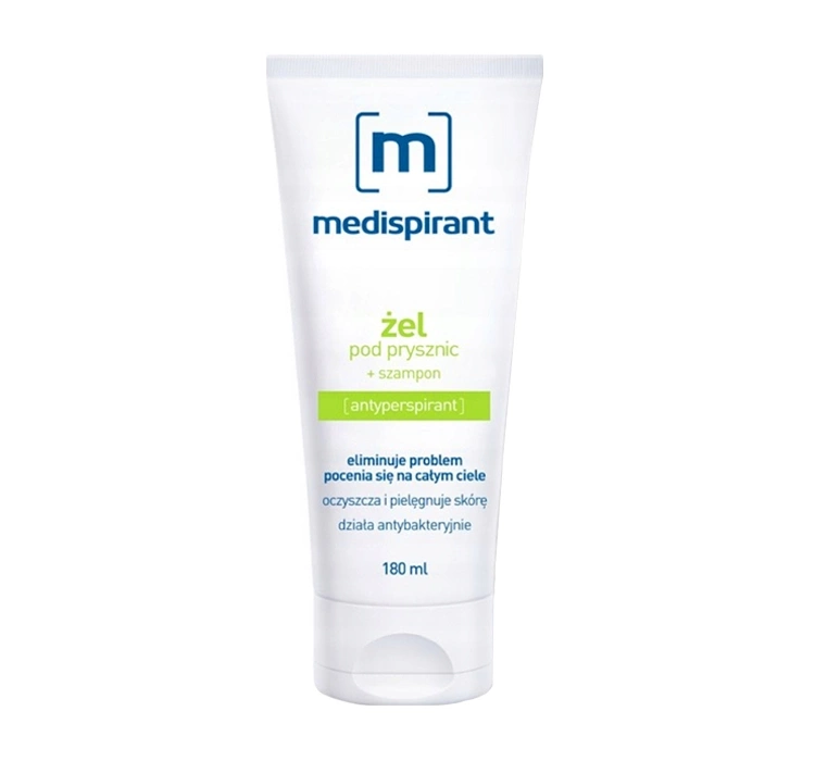 Гель для душу Medispirant - ідеальне рішення для людей, які мають проблему надмірного потовиділення по всьому тілу. Він не тільки ефективно очищає і живить шкіру, але перш за все знижує активність потових залоз, що при регулярному застосуванні зменшує виділення поту по всій поверхні тіла. Крім того, завдяки вмісту іонів цинку Medispirant є антибактеріальним і створює бар’єр проти утворення неприємного запаху поту. Гель для душу Medispirant забезпечує довготривале відчуття свіжості, роблячи шкіру м’якою і приємною на дотик.