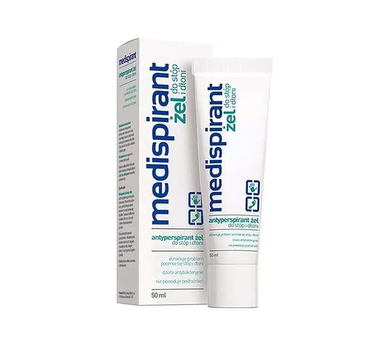 Medispirant для ніг і рук - це безбарвний професійний гель-антиперспірант без запаху, що забезпечує ефективний і тривалий захист від пітливості стоп і рук. Завдяки вмісту антибактеріальних компонентів гель Medispirant також допомагає усунути неприємний запах. Крім того, склад продукту був збагачений заспокійливим алантоїном, завдяки якому гель Medispirant не викликає подразнення шкіри.