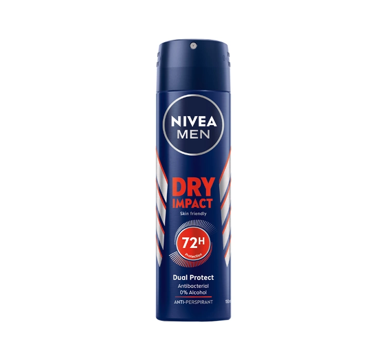 Dry Impact завдяки своїй двоактивній формулі вважається найсильнішим продуктом від марки Nivea. Захищає від надмірного потовиділення та забезпечує унікальне відчуття свіжості впродовж тривалого часу. Крім того, він доглядає за шкірою під пахвами та має освіжаючий, чоловічий аромат, який утримуватиметься багато годин.