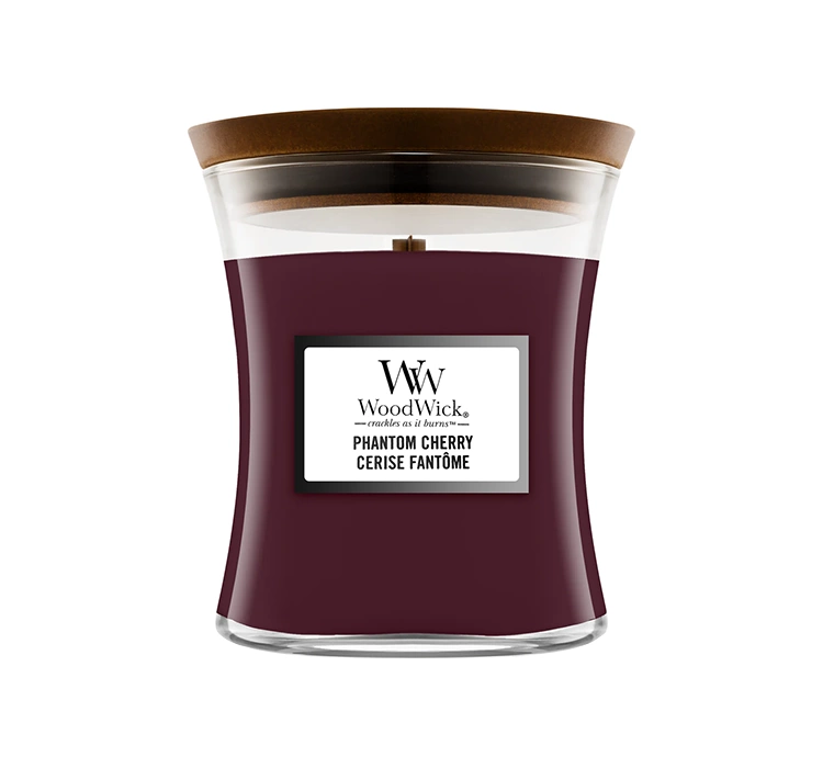 Ароматична свічка WoodWick Phantom Cherry — це аромат темного лісу, який огортає чуття, немов туман, що стелиться загадковою стежкою в серці ночі. Яскрава, соковита вишня переплітається з теплими нотами бурштину, створюючи солодко-гірку суміш з глибоким характером. Шовковистий аромат кашеміру ніжно обволікає, даруючи відчуття м’якого тепла, а копчена ваніль надає композиції чуттєвого, злегка містичного відтінку.