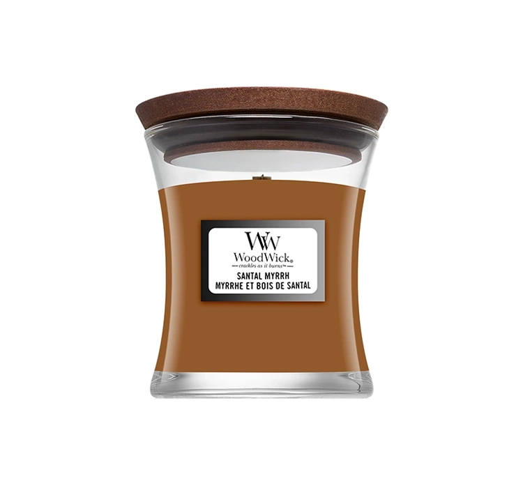 Ароматична свічка WoodWick Santal Myrrh огортає простір теплим деревним ароматом червоного дерева та смолистої мирри, який набуває особливої глибини завдяки золотистому бурштину та кремовому сандаловому дереву. Ніжна солодкість ванілі й кокоса гармонійно поєднується з бальзамічною олією елемі, а композицію оживляє свіжа нота лимона та легкий відтінок евкаліпта. Аромат вишуканий, обволікаючий і сповнений контрастів — поєднує теплі, східні акценти з освіжаючими цитрусовими нотами, створюючи атмосферу розслаблення й елегантності.