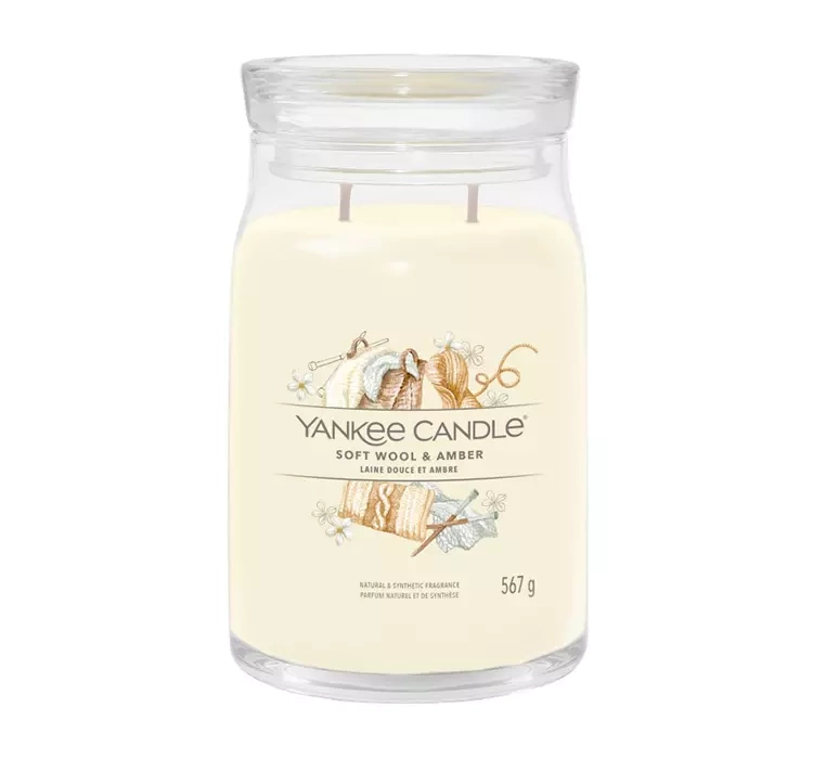 Ароматична свічка Yankee Candle Signature Soft Wool & Amber - це осінній аромат, наповнений теплими, затишними нотами кашеміру, амбри та жасмину.