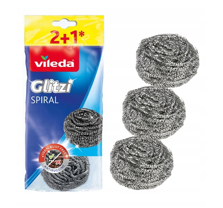 Vileda Glitzi Spiral INOX — ідеальний помічник для глибокого очищення каструль, сковорідок, духовок, грилів та інших кухонних поверхонь, де потрібне інтенсивне тертя без ризику пошкодити матеріал. Його висока абразивність забезпечує результат навіть без використання агресивних засобів для чищення.