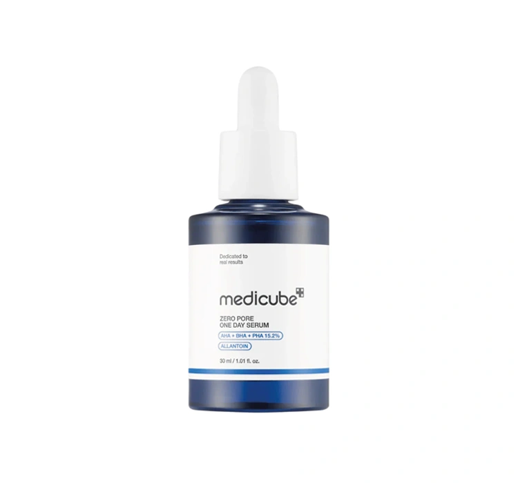 Сироватка Medicube Zero Pore One Day поєднує три типи кислот: гліколеву, саліцилову та глюконолактону, які разом забезпечують збалансований відлущувальний, очищувальний та нормалізуючий ефект. Вони допомагають згладити текстуру шкіри та освітлити плями, проникаючи глибоко в пори, зменшуючи чорні цятки та жирність. Вони зміцнюють захисний бар'єр, мають антиоксидантні та регулюючі властивості. Крім того, сироватка містить комплекс з п'яти форм гіалуронової кислоти, яка інтенсивно зволожує, пом'якшує та покращує еластичність шкіри. Наявність ніацинаміду та екстракту індиго дозволяє продукту помітно освітлювати плями та заспокоювати будь-яке подразнення.