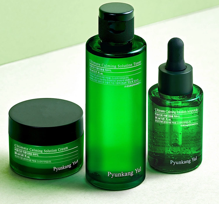 Лінія заспокійливої дермокосметики Pyunkang Yul Ultimate Calming Solution створена для догляду за чутливою та подразненою шкірою. Вона складається з трьох ідеально поєднаних продуктів, які разом створюють повну триступеневу програму догляду. До неї входить тонік, сироватка і крем.