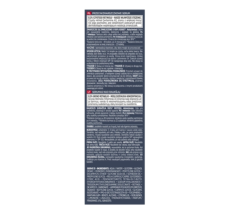 Revitalift Laser Pure Retinol сироватка на ніч збагачена чистим ретинолом і зменшує всі типи зморшок, навіть глибокі. Чистий ретинол або вітамін А, як відомо, є потужним і має доведений антивіковий ефект, такий як уповільнення появи зморшок та вирівнювання текстури шкіри.