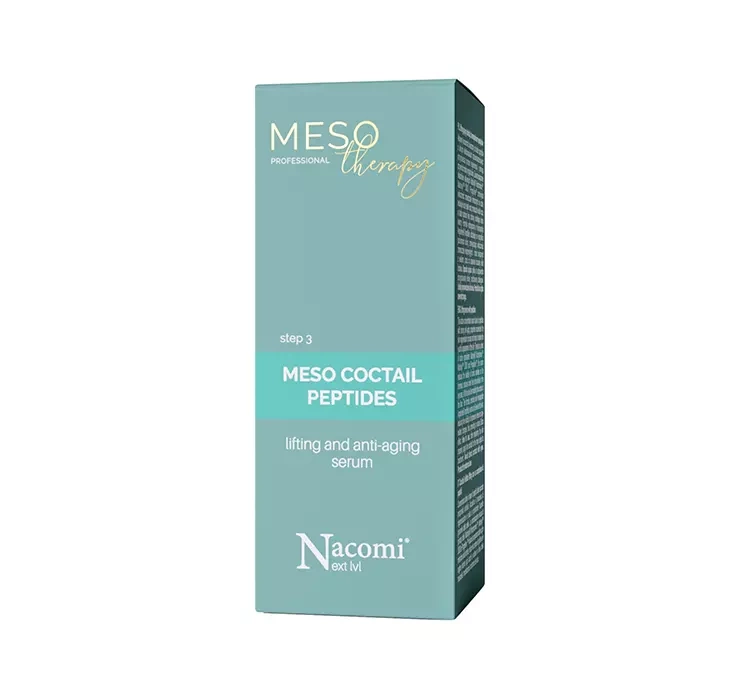 Активний концентрат у вигляді сироватки від зморшок Nacomi Meso створений на основі пептидів. До його складу входять, серед інших, Matrixyl Morphomics, Matrixyl 3000 і Progeline, які піднімають лінію щелепи і моделюють контур обличчя.
