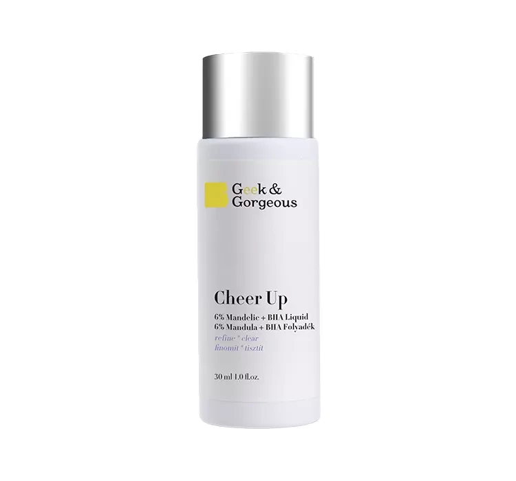 Ексфоліант для обличчя Cheer Up Geek & Gorgeous призначений для комбінованої жирної шкіри. Його легка текстура дуже легко наноситься і швидко вбирається - як тонік. Має середню/сильну дію як на поверхні шкіри, так і всередині пор, де ефективно їх очищає та звужує. У відлущувальному тоніці Cheer Up Geek і Gorgeous Ви знайдете комбінацію 5% мигдальної кислоти та 1% саліцилової кислоти. Кислоти видаляють мертві клітини з поверхні шкіри, додатково регулюють виділення шкірного сала та мають антибактеріальні та протизапальні властивості. Вони були підкріплені похідною амінокислоти та тріо речовин на основі цукру, які підтримують вологість епідермісу.