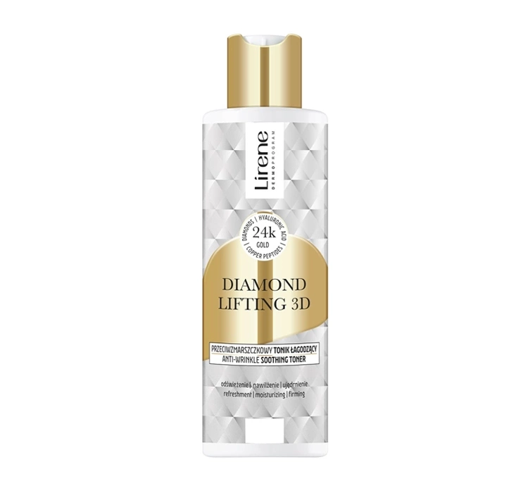 Lirene Diamond Lifting 3D - це інноваційна серія косметики для щоденного догляду за обличчям. Її формула заснована на омолоджуючій силі діамантів, які мають науково доведені властивості проти старіння та ліфтингу. Багатий вміст усіх видів живильних речовин гарантує шкірі гладкість, м'якість і належне зволоження. Серія косметики присвячена зрілій шкірі, яка потребує належного догляду.