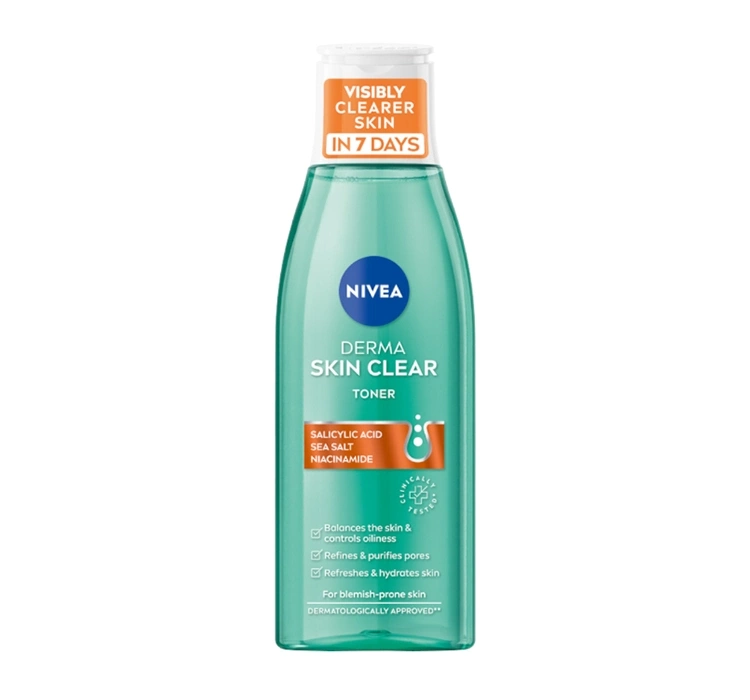 Нормалізуючий тонік для обличчя з серії NIVEA Derma Skin Clear особливо рекомендований для шкіри, яка бореться з недоліками та схильна до їх утворення. Багата рецептура тоніка NIVEA заснована на поєднанні дорогоцінної саліцилової кислоти та ніацинаміду, які ефективно очищають пори та позитивно впливають на роботу сальних залоз. Нормалізуючий тонік NIVEA Derma Skin Clear робить шкіру чистою, гладкою, оксамитово-м'якою на дотик і дарує комфортне відчуття освіження. Регулярне використання тоніка для обличчя NIVEA поверне Вашій шкірі здоровий і красивий вигляд. Безспиртовий тонік із серії NIVEA Derma Skin Clear має легку консистенцію. Тонік із саліциловою кислотою - косметичний засіб, який ідеально підготує вашу шкіру до подальших процедур догляду.