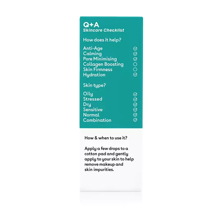Щоденний догляд з брендом Q+A надзвичайно простий та інтуїтивно зрозумілий. Серед численних пропозицій можна знайти засоби для очищення, зняття макіяжу, тонізації, живлення та регенерації шкіри. Серії відрізняються одна від одної додаванням натуральних активних інгредієнтів, які допоможуть у комплексному догляді за шкірою та задовольнять її індивідуальні потреби. На кожній упаковці є таблиця з детальним переліком характеристик продукту - варто звернути увагу!