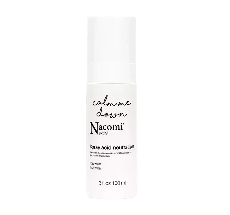 Nacomi Next Level Calm Me Down — це препарат, який дозволяє безпечно виконувати процедури гідроксикислотного пілінгу. Косметичний засіб ефективно нейтралізує інтенсивну дію кислот, завдяки чому зменшує будь-які подразнення шкіри, такі як потемніння та печіння, і відновлює її природний pH. Інноваційна формула косметичного засобу містить сік алое вера, який глибоко зволожує, освіжає і тонізує шкіру, а в поєднанні з пантенолом заспокоює всі подразнення, стимулює регенерацію і захищає від шкідливого впливу зовнішніх чинників. Композиція містить зміцнювальну та трояндову воду в поєднанні з березовою водою, які очищають, освітлюють та усувають зміну кольору шкіри, повертаючи їй свіжий, природний, сяючий вигляд. Формула також збагачена трегалозою, відомою своїми глибоко зволожуючими властивостями, яка також зміцнює функцію природного захисного бар’єру, розгладжує зморшки та покращує загальний стан шкіри.