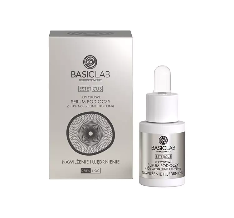 Спеціалізована сироватка під очі із серії BasicLab Esteticus - це фантастичний засіб проти зморшок, призначений для денного та нічного використання. В своїй інноваційній формулі містить пептид під назвою «безпечний ботокс» 10% аргірелін, який стимулює вироблення колагенових волокон, завдяки чому він чітко зміцнює та згладжує шкіру і таким чином зменшує помітні зморшки до 28% за 30 днів. До складу також входить ніацинамід, який глибоко зволожує та ефективно зміцнює епідермальний ліпідний бар’єр роблячи його більш стійким до негативних зовнішніх факторів. Формула також збагачена кофеїном та гіалуроновою кислотою, які глибоко зволожують, мають властивості проти старіння та запобігають надмірному висиханню епідермісу. Регулярне використання сироватки сприяє тому, що шкіра під очима стає помітно розгладжена, належним чином зволожена, еластична та насичена природним сяйвом.