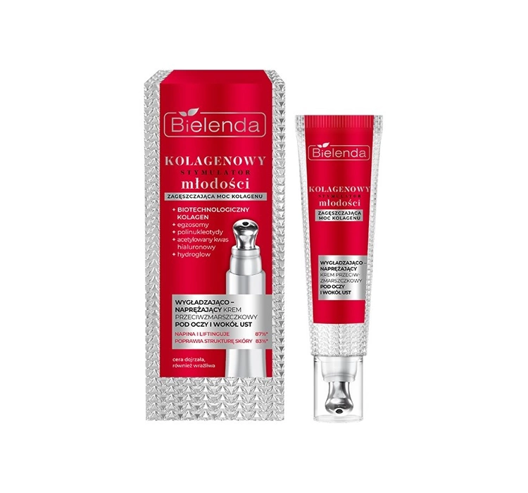 Крем проти зморшок навколо очей та рота Bielenda Collagen Youth Stimulator інтенсивно зволожує, розгладжує і покращує стан шкіри. Крім того, він зменшує видимість зморшок, завдяки чому шкіра виглядає більш підтягнутою та свіжою.