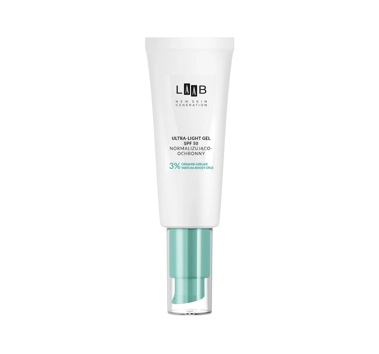 Формула гелю SPF 50 AA LAAB Clear Skin Solution, насичена активними інгредієнтами, створена для комбінованої, жирної та схильної до недосконалостей шкіри. Чай матча має протизапальну дію, цераміди зміцнюють природний бар'єр шкіри, а азелаїнова кислота у формі екзосом підтримує відлущування мертвих клітин, розкриваючи пори та покращуючи текстуру шкіри. Наявність ніацинаміду та фітосфінгозину додатково заспокоює подразнення, зменшує почервоніння та допомагає регулювати секрецію шкірного сала.