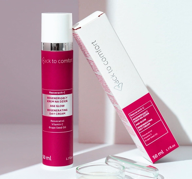 6 місяців після відкриттяВідновлюючий крем на день Back To Comfort Resveravit-C Age Glow — надзвичайно ефективний косметичний засіб, який стане відмінним вибором для людей, які борються з проблемами зрілої шкіри та першими ознаками старіння шкіри. Інноваційна формула заснована на цінній комбінації ресвератролу, вітаміну С, гідростаталіну та інгредієнта, що складається з олії кісточок малини та сукцинату вітаміну Е, які помітно покращують зовнішній вигляд і стан.